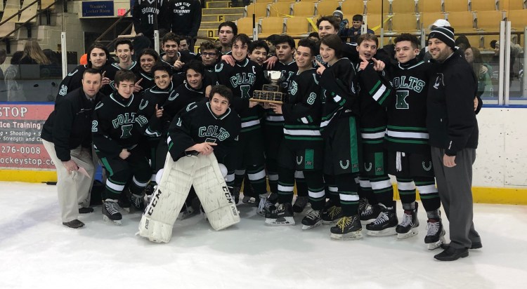 But the seedings, and the regular season, ultimately did not matter when Kinnelon and Vernon took the ice on Thursday for the Halvorsen Cup final. Kinnelon took control right off the bat, as Joey Arnold and Chris Kosco scored 45 seconds apart to take an early lead. It never looked back, as it rolled to an impressive 6-1 win over Vernon for the program’s first Halvorsen Cup title- and first outright cup title.